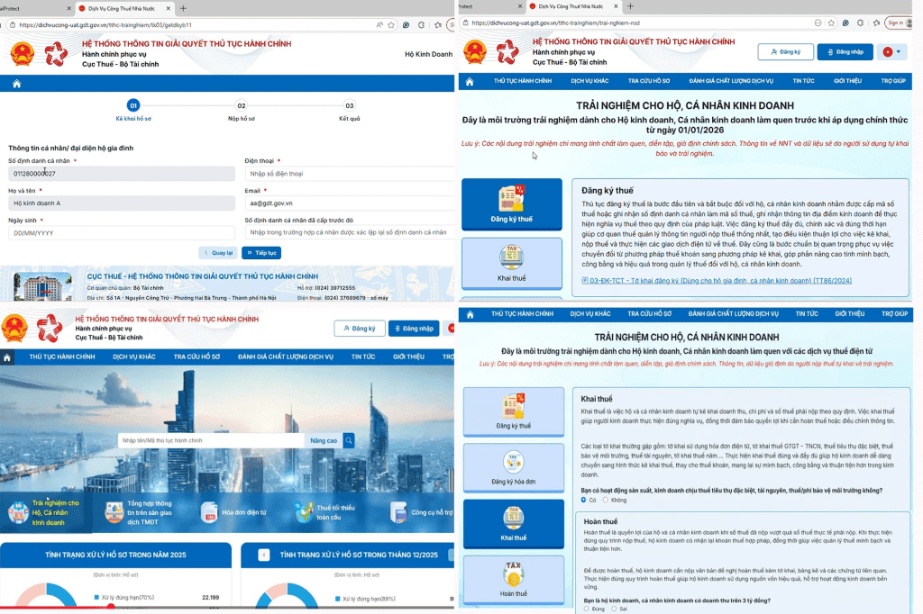 Thông qua hội nghị tập huấn, Cục Thuế đã giới thiệu chính thức Cổng trải nghiệm dành cho hộ, cá nhân kinh doanh với trải nghiệm được thiết kế như một “môi trường giả lập” hoàn chỉnh, cung cấp cho người nộp thuế được tiếp cận trực quan để làm quen với toàn bộ quy trình quản lý thuế hiện đại: từ đăng ký thuế, kê khai, nộp thuế, hoàn thuế đến đăng ký và sử dụng hóa đơn điện tử.