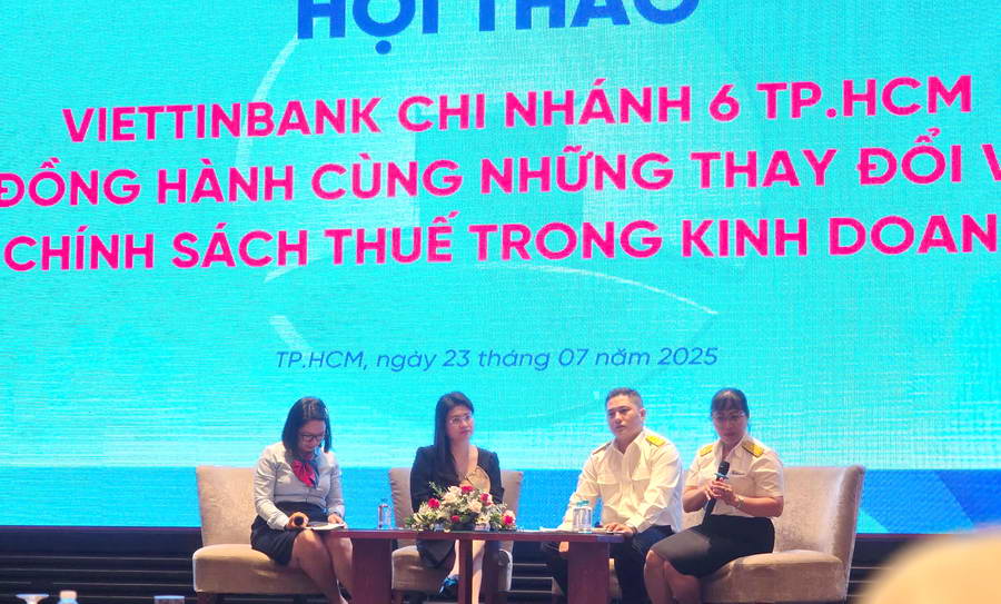 Ngân hàng TMCP Công thương Việt Nam – Chi nhánh 6 TP.HCM đã phối hợp tổ chức Hội thảo “VietinBank – Chi nhánh 6 TP.HCM đồng hành cùng những thay đổi về chính sách thuế trong kinh doanh”, với sự tham dự của đại diện Thuế Cơ sở 5 (Thuế TP.HCM) và chuyên gia thuế cùng đông đảo hộ kinh doanh tham gia sự kiện.