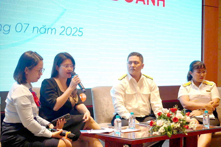 Đại diện Thuế Cơ sở 5 (Thuế TP.HCM) và ThS. Nguyễn Ngọc Thanh Phương giải đáp các thắc mắc về thuế của hộ kinh doanh tham gia hội thảo.