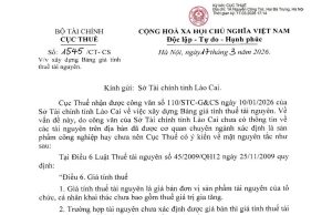 Công văn số 1545/CT-CS của Cục Thuế về xây dựng Bảng giá tính thuế tài nguyênCục Thuế - Bộ Tài chính vừa ban hành Công văn số 1545/CT-CS ngày 17/3/2026 trả lời Sở Tài chính tỉnh Lào Cai về xây dựng Bảng giá tính thuế tài nguyên.