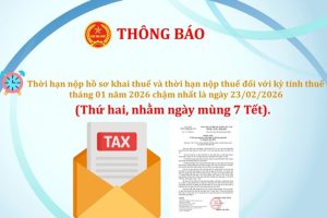 Hạn nộp hồ sơ khai thuế và nộp thuế tháng 01/2026: Chậm nhất ngày 23/02/2026Thuế tỉnh Đắk Lắk vừa ban hành Thông báo số 273/TB-DLA ngày 5/02/2026 gửi các tổ chức, doanh nghiệp, hộ kinh doanh, cá nhân kinh doanh trên địa bàn tỉnh Đắk Lắk về thời hạn nộp hồ sơ khai thuế và thời hạn nộp thuế kỳ tháng 01 năm 2026.