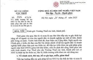 Thuế các địa phương khẩn trương hỗ trợ người nộp thuế vùng bão lũ bị tổn thấtCục Thuế đã có Công văn số 5526/CT-CS ngày 25/11/2025 hỏa tốc gửi Trưởng Thuế các tỉnh, thành phố yêu cầu khẩn trương hỗ trợ người nộp thuế bị tổn thất do thiên tai, bão lũ có điều kiện khắc phục hậu quả.