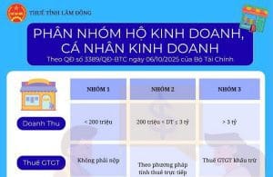 Infographic: Thuế tỉnh Lâm Đồng phân nhóm HKD theo Quyết định số 3389/QĐ-BTC của Bộ Tài chínhNgày 27/10/2025, Thuế tỉnh Lâm Đồng vừa thông tin đến người nộp thuế về việc phân nhóm hộ kinh doanh (HKD), cá nhân kinh doanh theo Quyết định số 3389/QĐ-BTC ngày 6/10/2025 của Bộ Tài chính.