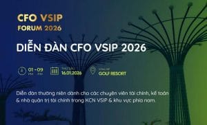 Diễn đàn CFO VSIP 2026: Cơ hội trao đổi về quản trị tài chính, kế toán, thuế quan và ứng dụng công nghệDiễn đàn CFO VSIP 2026 sẽ chính thức diễn ra chiều ngày 16/1/2026 (thời gian từ 14-21 giờ), tại Song Be Golf Resort, số 77 Đại lộ Bình Dương, phường Lái Thiêu, TP.HCM. Đây là Diễn đàn thường niên dành cho các chuyên viên tài chính, kế toán và nhà quản trị tài chính trong […]