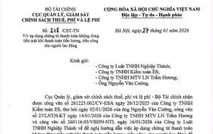 Bộ Tài chính: Thanh toán tiền lương, tiền công từ 5 triệu đồng trở lên phải có chứng từ ‘không dùng tiền mặt’Ngày 27/1/2026, Cục Quản lý, Giám sát chính sách thuế, phí và lệ phí – Bộ Tài chính vừa ban hành Công văn số 218/CST-TN hướng dẫn về việc áp dụng chứng từ thanh toán không dùng tiền mặt khi thanh toán tiền lương, tiền công cho người lao động.
