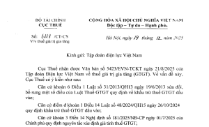 Công văn số 6118/CT-CS của Cục Thuế hướng dẫn chính sách thuế GTGTCục Thuế - Bộ Tài chính vừa ban hành Công văn 6118/CT-CS ngày 19/12/2025, trả lời Tập đoàn điện lực Việt Nam về lập hóa đơn, tính thuế giá trị gia tăng (GTGT).