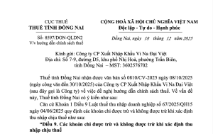 Thuế Đồng Nai: Hướng dẫn về các khoản chi được trừ và không được trừ khi xác định thu nhập chịu thuếThuế tỉnh Đồng Nai vừa ban hành Công văn số 8597/DON-QLDN2 ngày 18/12/2025, trả lời Công ty CP Xuất Nhập Khẩu Vi Na Đại Việt hướng dẫn chính sách thuế về các khoản chi được trừ và không được trừ khi xác định thu nhập chịu thuế.