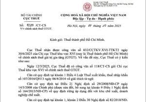 Công văn số 4280/CT-CS của Cục Thuế trả lời về chính sách thuế GTGTCục Thuế – Bộ Tài chính vừa ban hành Công văn số 4280/CT-CS ngày 7/10/2025 trả lời Thuế TP Hồ Chí Minh về chính sách thuế giá trị gia tăng (GTGT).