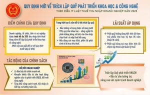 Infographic: Quy định mới về trích lập Quỹ phát triển khoa học và công nghệNgày 19/9/2025, Thuế TP Hồ Chí Minh vừa thông tin đến người nộp thuế về Quy định mới đối với trích lập Quỹ phát triển khoa học và công nghệ tại Luật Thuế thu nhập doanh nghiệp số 67/2025/QH15, có hiệu lực thi hành từ 1/10/2025 .