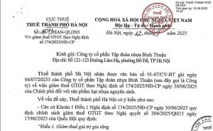 Thuế TP Hà Nội: Công văn số 16073/HAN-QLDN3 về việc giảm thuế GTGTThuế TP Hà Nội vừa ban hành Công văn số 16073/HAN-QLDN3, ngày 12/9/2025 trả lời Tập đoàn nhựa Bình Thuận về việc giảm thuế suất thuế giá trị gia tăng (GTGT) theo Nghị định số 174/2025/NĐ-CP của Chính phủ.
