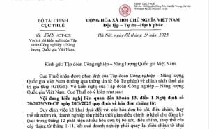 Công văn số 3915/CT-CS của Cục Thuế trả lời về chính sách thuế GTGTCục Thuế - Bộ Tài chính vừa ban hành Công văn số 3915/CT-CS, ngày 18/9/2025, trả lời kiến nghị của Tập đoàn Công nghiệp - Năng lượng Quốc gia Việt Nam về chính sách thuế giá trị gia tăng (GTGT).