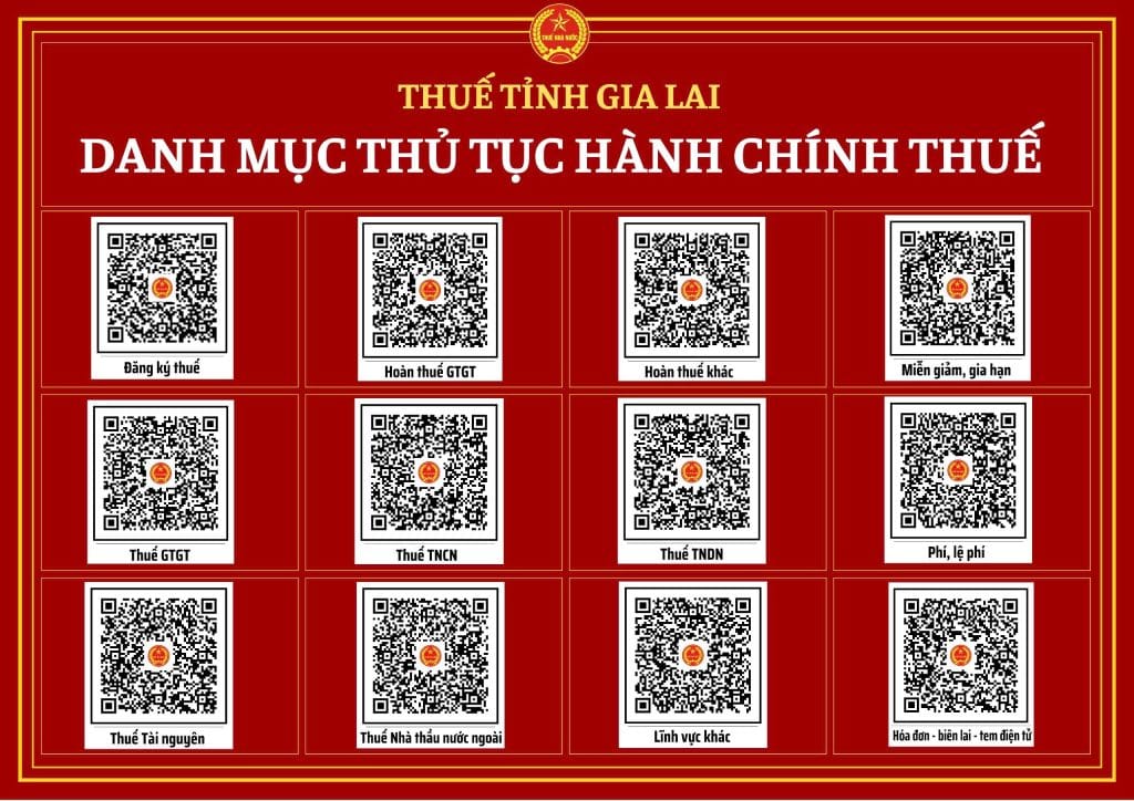 Thuế tỉnh Gia Lai vừa công khai Danh mục thủ tục hành chính (TTHC) thuế bằng mã QR và hướng dẫn thực hiện TTHC thuế trên môi trường điện tử (theo Nghị định số 118/2025/NĐ-CP hiệu lực từ 1/7/2025).