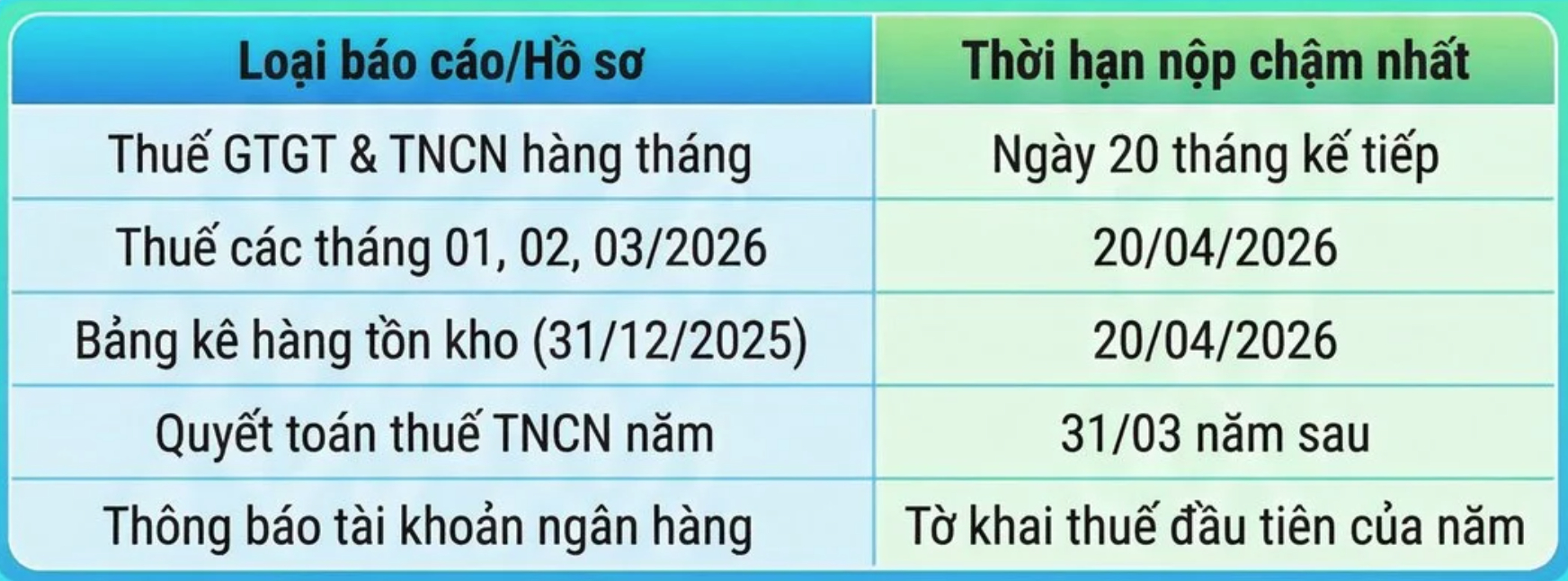 Lưu ý, đối với hộ kinh doanh có doanh thu năm 2025 trên 500 triệu đồng hoặc mới thành lập, việc thông báo tài khoản cần thực hiện đồng thời khi nộp tờ khai thuế đầu tiên của năm 2026.