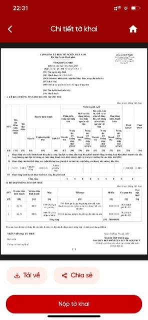 + Người nộp thuế nhấn Tải về, nếu thực hiện lưu tờ khai dưới dạng PDF về điện thoại.