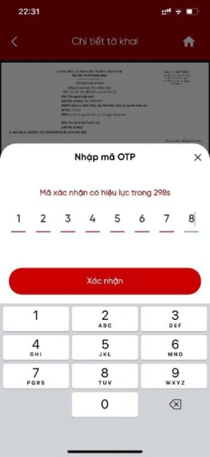 – NNT nhập mã OTP để hoàn thành thủ tục nộp tờ khai. Do đây là Cổng trải nghiệm nên hệ thống tự động sinh mã OTP. NNT ấn “Xác nhận” để hoàn thành thao tác.