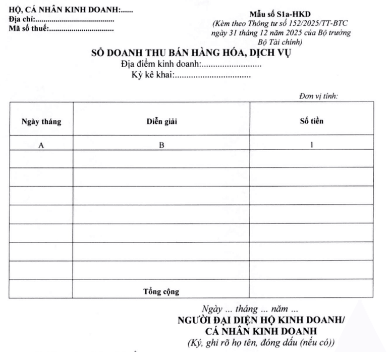 Sổ doanh thu bán hàng hóa, dịch vụ (Mẫu số S2a-HKD)