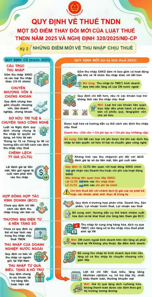 Infographic: Luật thuế TNDN 2025 và Nghị định 320/2025/NĐ-CP (kỳ 2): Những điểm mới về thu nhập chịu thuế