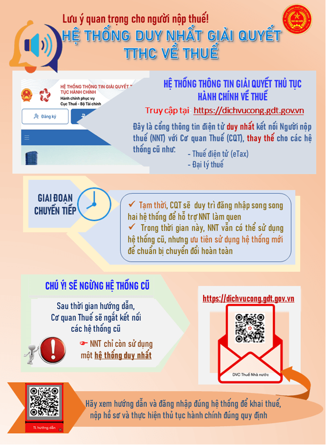 Infographic: Lưu ý quan trọng về hệ thống duy nhất giải quyết thủ tục hành chính thuế ThuevaCuocsong.vn Thứ Ba, 22/07/2025 Thời gian đọc: < 1 phút Thuế TP.HCM vừa có lưu ý quan trọng cho người nộp thuế về hệ thống duy nhất giải quyết thủ tục hành chính (TTHC) thuế. Nguồn: Thuế TP Hồ Chí Minh Tagsgiải quyết TTHC thuếngười nộp thuếthủ tục hành chínhthủ tục hành chính thuế Bài trướcThanh niên nông thôn được tạo nhiều cơ hội hoàn thiện kỹ năng khởi nghiệpBài tiếp theoĐề xuất tính thuế 20% trên lãi bán chứng khoán BÀI MỚI Bán đất hơn 10 năm nhưng vẫn bị báo… nợ thuế Thuế quan Mỹ có thể ‘cuốn phăng’ hàng tỷ USD xuất khẩu của ASEAN Thư kêu gọi, vận động ủng hộ đồng bào bị thiệt hại do bão số 10 Ngưỡng chịu thuế của hộ kinh doanh: Mức nào phù hợp? Bộ Tài chính hoàn thiện chính sách thuế bất động sản, vàng, casino