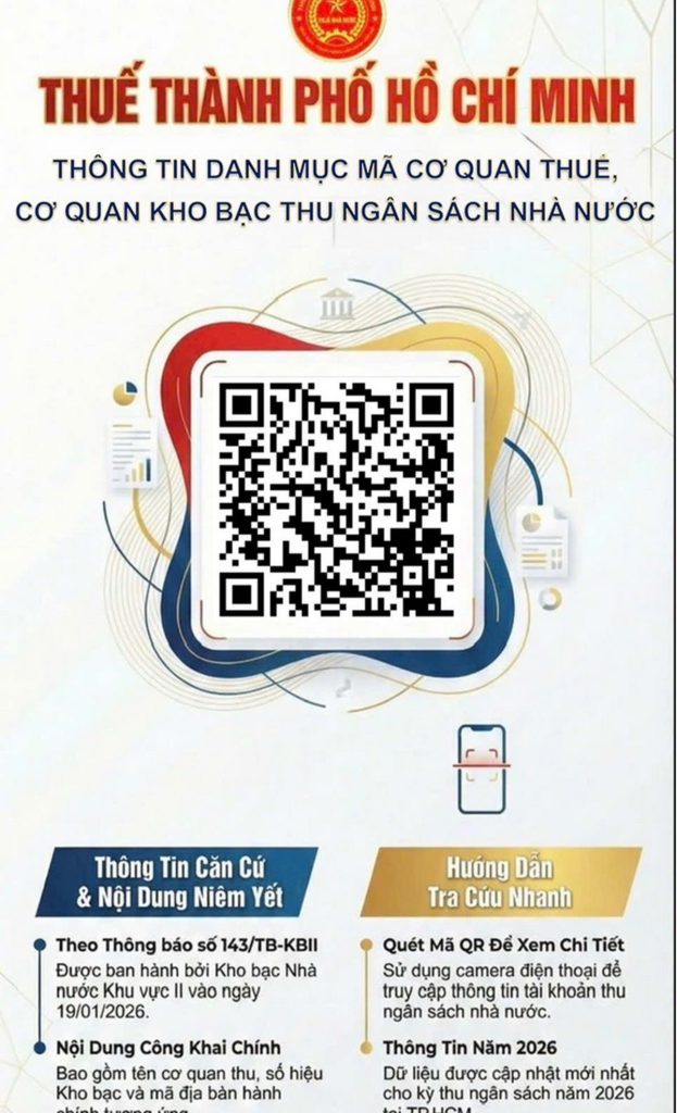 Thuế TP.HCM vừa thông tin đến người nộp thuế về danh mục mã cơ quan Thuế, mã Kho bạc thu ngân sách Nhà nước trên địa bàn TP.HCM.