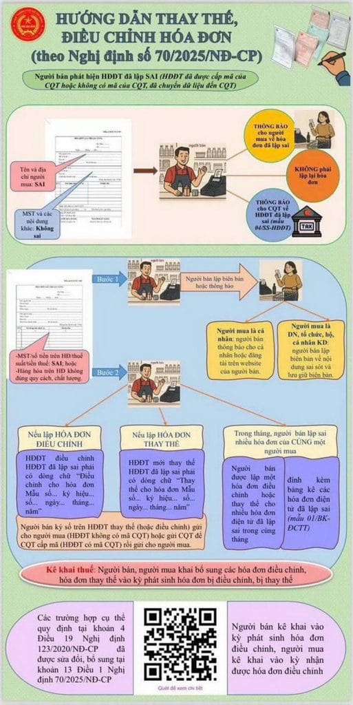 Infographic: Thuế TP.HCM hướng dẫn thay thế, điều chỉnh hóa đơn theo quy định tại Nghị định 70/2025/NĐ-CP