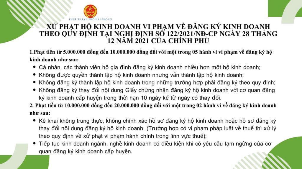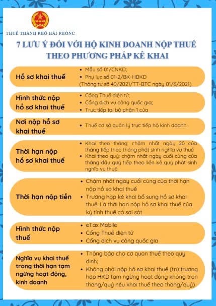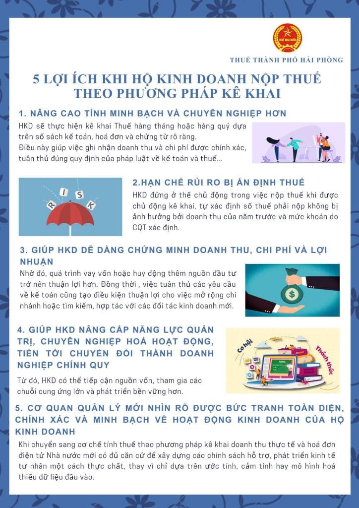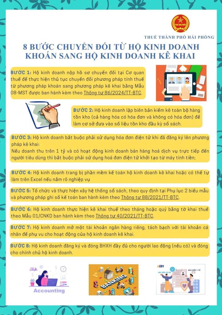 Thuế TP. Hải Phòng vừa thông tin đến hộ kinh doanh (HKD) về việc lưu ý một số nội dung khi chuyển đổi HKD từ phương pháp thuế khoán sang kê khai thuế hoặc chuyển lên doanh nghiệp.