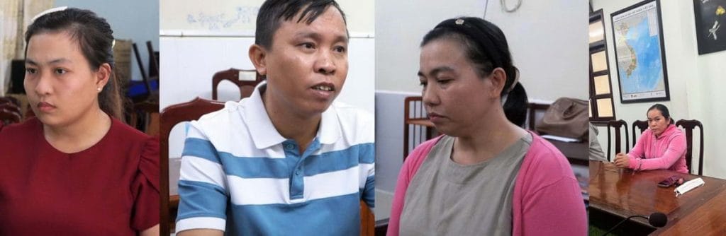 Các bị cáo Nguyễn Thị Xuân An, Phạm Quang Châu, Nguyễn Thị Xuân Tuyết, Nguyễn Nhật Phương tại cơ quan Công an.