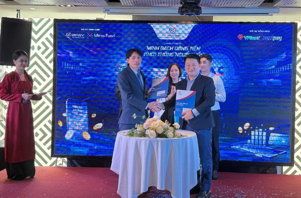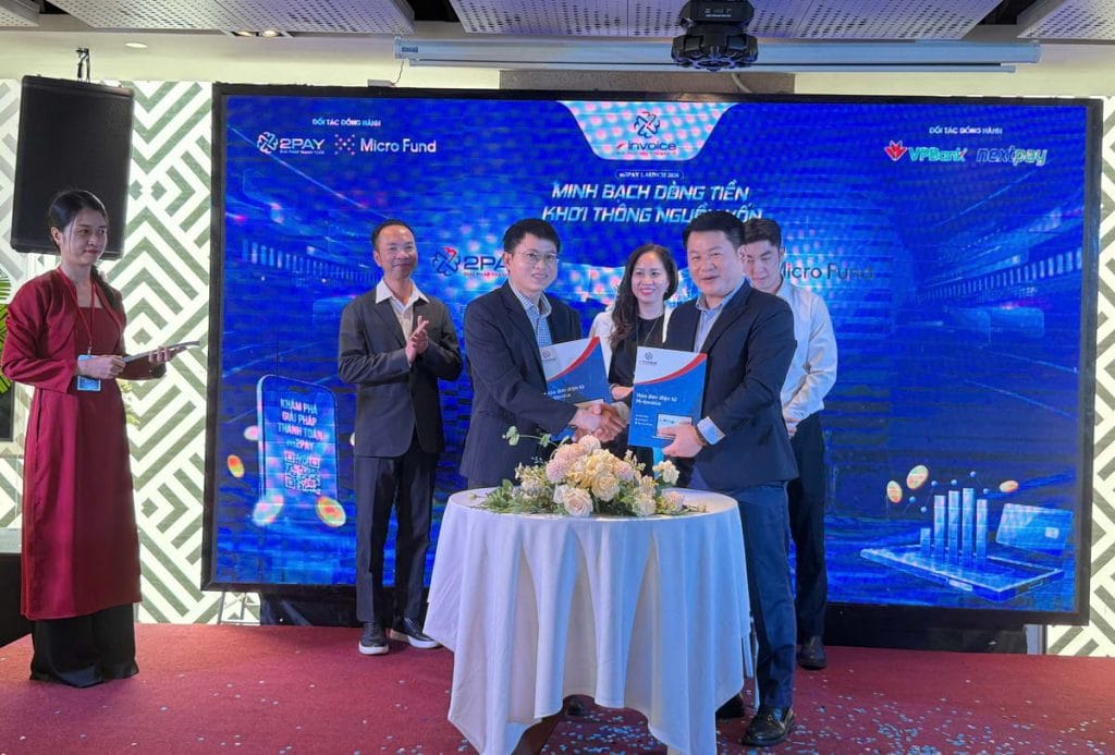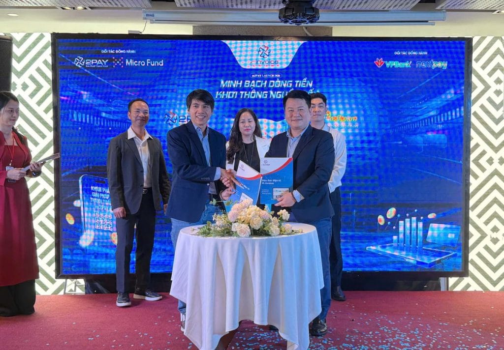 Đại diện M-invoice đã ký kết Biên bản ghi nhớ hợp tác với các đối tác gồm: NextPay, MicroFund, VPBank, PosApp, F2 Asia và Đại lý thuế ACC Thái Bình Dương.
