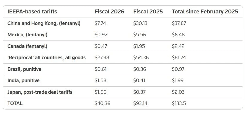 Chính quyền Tổng thống Mỹ Donald Trump có thể phải hoàn trả hơn 133,5 tỷ USD tiền thuế quan cho các nhà nhập khẩu nếu Tòa án Tối cao Mỹ tuyên bố các mức thuế được áp đặt theo Đạo luật Quyền hạn Kinh tế Khẩn cấp Quốc tế (IEEPA) là trái pháp luật, theo số liệu từ Cơ quan Hải quan và Bảo vệ Biên giới Mỹ (CBP).