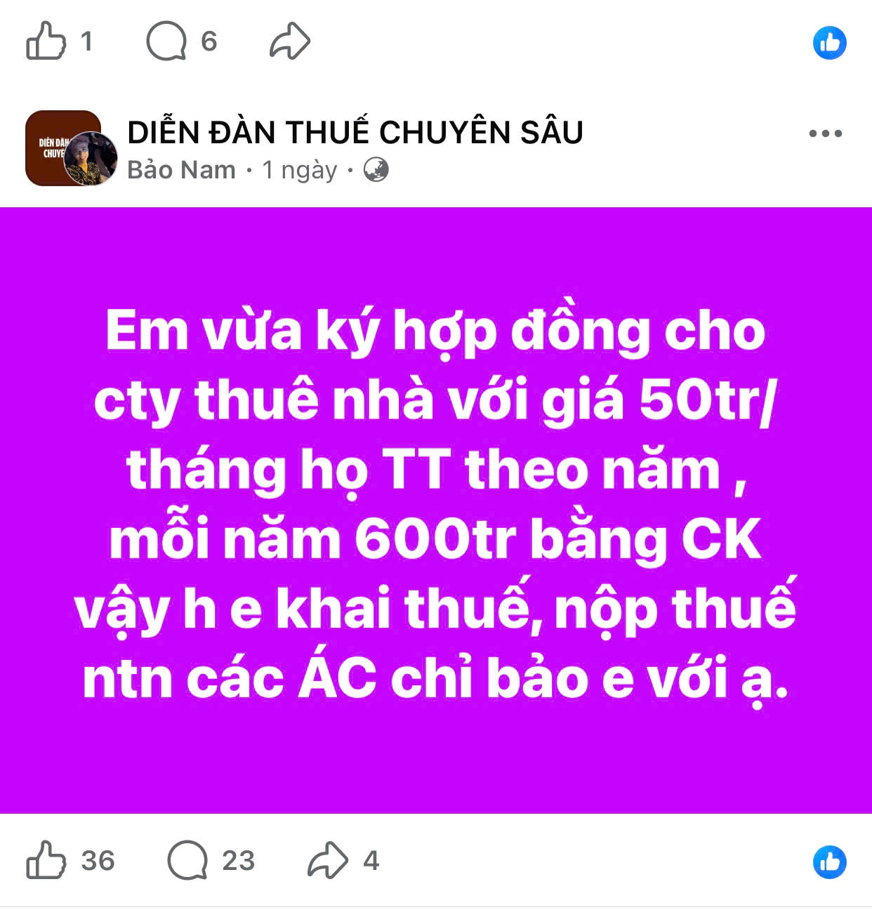 Tương tự, trên các Cộng đồng về thuế, rất nhiều các cá nhân, hộ kinh doanh có nhà cho cá nhân hoặc công ty thuê cũng có những thắc mắc về việc kê khai, nộp thuế, với doanh thu trên 500 triệu hay dưới mức này.