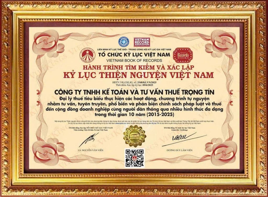 Trọng Tín tiếp tục được Hội Kỷ lục gia Việt Nam và Viện Kỷ lục Việt Nam trao Kỷ lục Việt Nam về thuế lần thứ 2. Trước đó, đại lý thuế này cũng đã xác lập Kỷ lục Việt Nam về “Đại lý thuế đầu tiên tại TP.HCM” vào năm 2013.