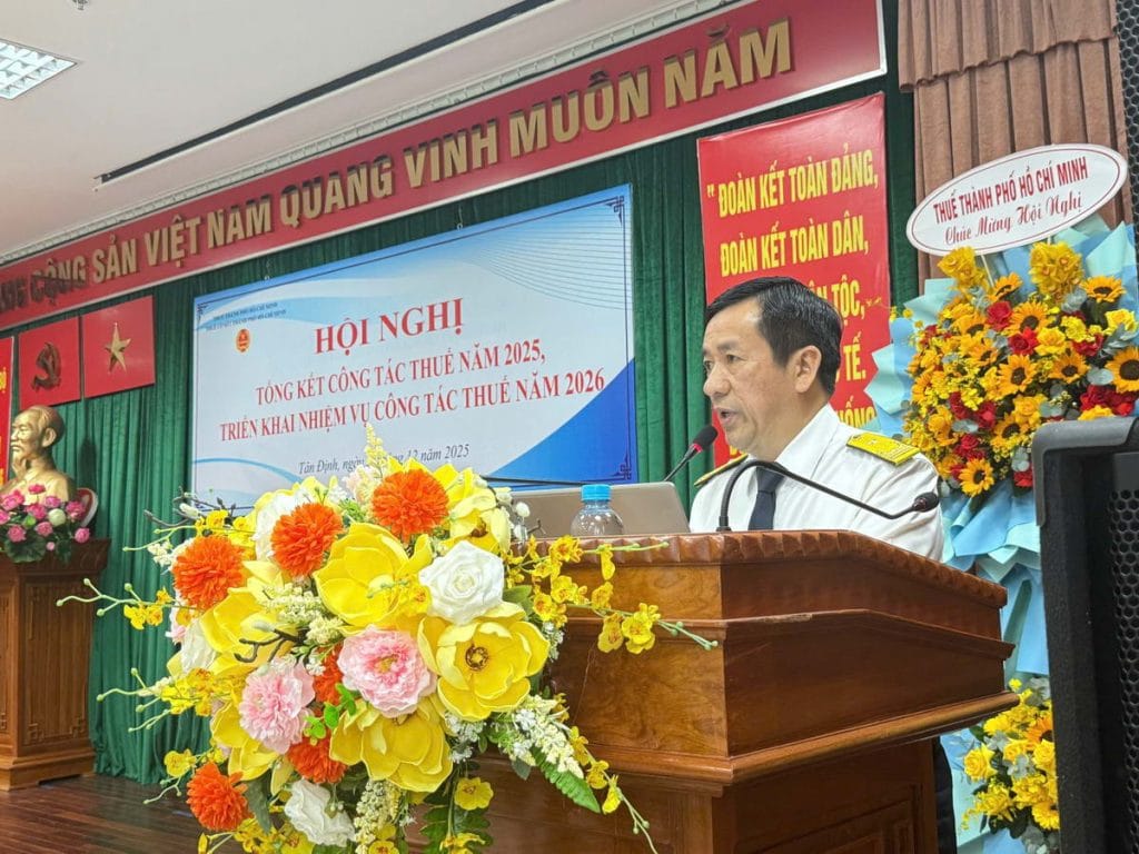 Ngày 30/12/2025, Thuế cơ sở 1 (Thuế TP Hồ Chí Minh) đã tổ chức Hội nghị Tổng kết công tác thuế năm 2025 và triển khai phương hướng, nhiệm vụ năm 2026. Đến dự hội nghị có sự hiện diện của Lãnh đạo Thuế TP.HCM và đại diện lãnh đạo 4 phường trên địa bàn quản lý thuế gồm: Tân Định, Sài Gòn, Bến Thành, Cầu Ông Lãnh cùng đại diện các cơ quan, ban ngành và cán bộ, công chức Thuế cơ sở 1.
