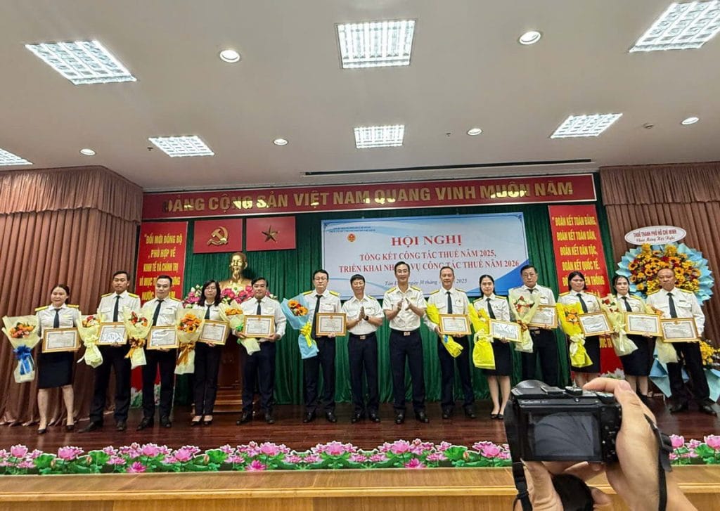 Trong dịp này, có 23 cá nhân là chuyên viên, kiểm tra viên thuế đã vinh dự được Lãnh đạo Thuế TP.HCM trao tặng Giấy khen hoàn thành xuất sắc công tác thuế năm 2025.
