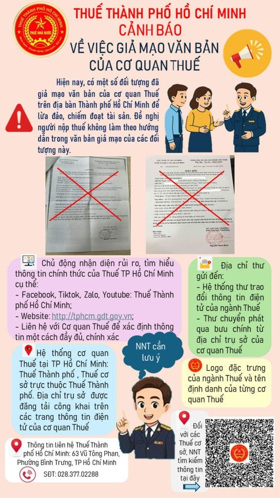 Infographic: Thuế TP.HCM cảnh báo về việc giả mạo văn bản của cơ quan Thuế