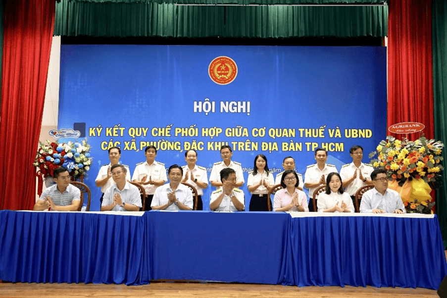 Ngày 15/12/2025, Thuế TP Hồ Chí Minh tổ chức Hội nghị ký kết Quy chế phối hợp trong công tác quản lý thuế đối với hộ kinh doanh (HKD) giữa Cơ quan thuế và UBND các Xã, Phường, Đặc khu trên địa bàn TP.HCM.