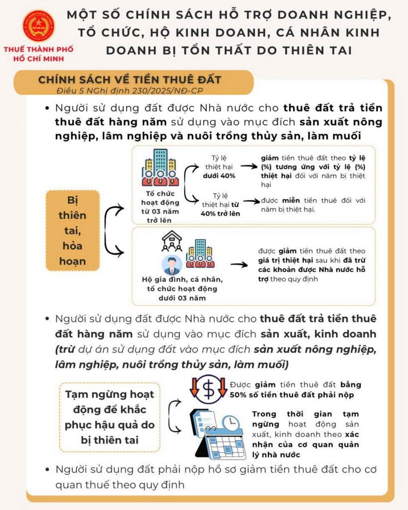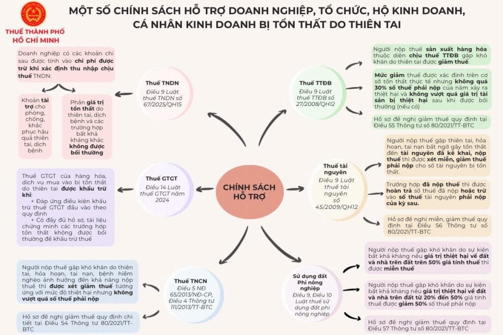 Ngày 27/10/2025, Thuế TP Hồ Chí Minh vừa thông tin đến người nộp thuế về một số chính sách hỗ trợ doanh nghiệp, tổ chức, hộ kinh doanh, cá nhân kinh doanh bị tổn thất do thiên tai.