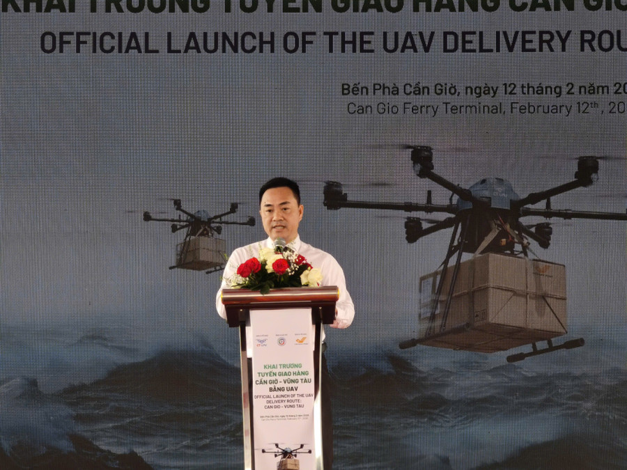 Sáng 12/2, Sở Khoa học và Công nghệ TPHCM phối hợp cùng Tổng Công ty Bưu điện Việt Nam (Vietnam Post) và Công ty Cổ phần CT UAV chính thức công bố triển khai tuyến giao hàng bưu chính bằng thiết bị bay không người lái (UAV) kết nối giữa xã Cần Giờ và phường Vũng Tàu.