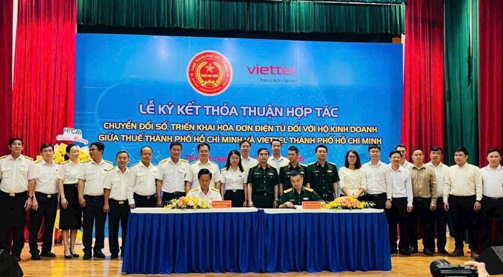 Ngày 26/9/2025, Thuế TPHCM và Viettel TPHCM đã tổ chức Lễ ký kết thỏa thuận hợp tác chuyển đổi số, triển khai hóa đơn điện tử cho toàn bộ hộ kinh doanh trên địa bàn và phối hợp hướng dẫn chính sách thuế.