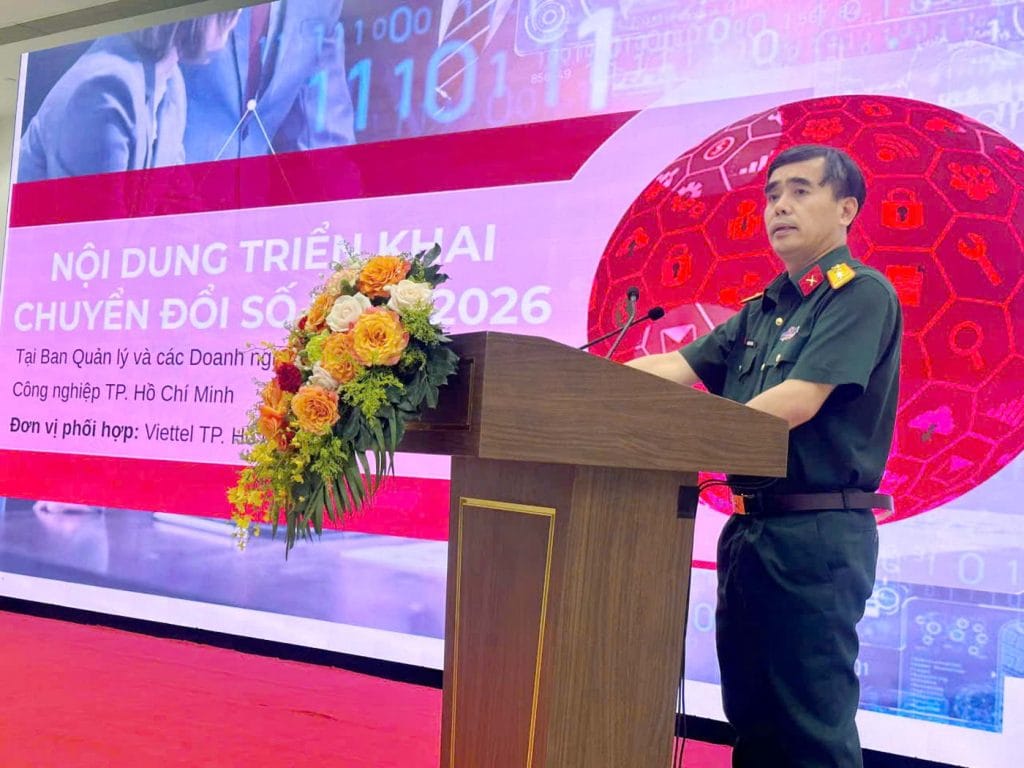 Tại hội nghị, ông Nguyễn Văn Dũng – Phó Giám đốc Viettel TP.HCM đã trình bày và chia sẻ tổng thể kế hoạch chuyển đổi số tại Ban Quản lý và các doanh nghiệp trong KCX, KCN năm 2026, với mục tiêu không chỉ hiện đại hóa công tác quản lý nhà nước, mà còn hỗ trợ doanh nghiệp tái cấu trúc mô hình quản trị, sản xuất, nhân sự và vận hành theo hướng số hóa – minh bạch – hiệu quả – bền vững.