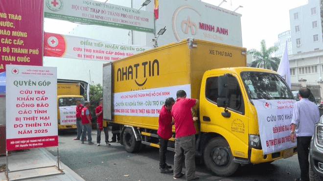 Ông Trần Văn Tuấn – Phó Chủ tịch Hội Chữ thập đỏ TP. Hồ Chí Minh, cho biết: “Trong ngày hôm nay, hai chuyến xe chở hàng cứu trợ gồm khoảng 1.000 suất quà nhu yếu phẩm sẽ được vận chuyển đến Thái Nguyên và Bắc Ninh, tiếp sức người dân vùng lũ vượt qua khó khăn”.