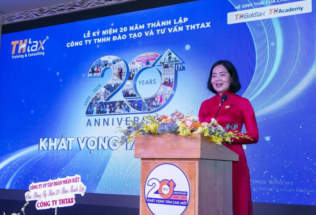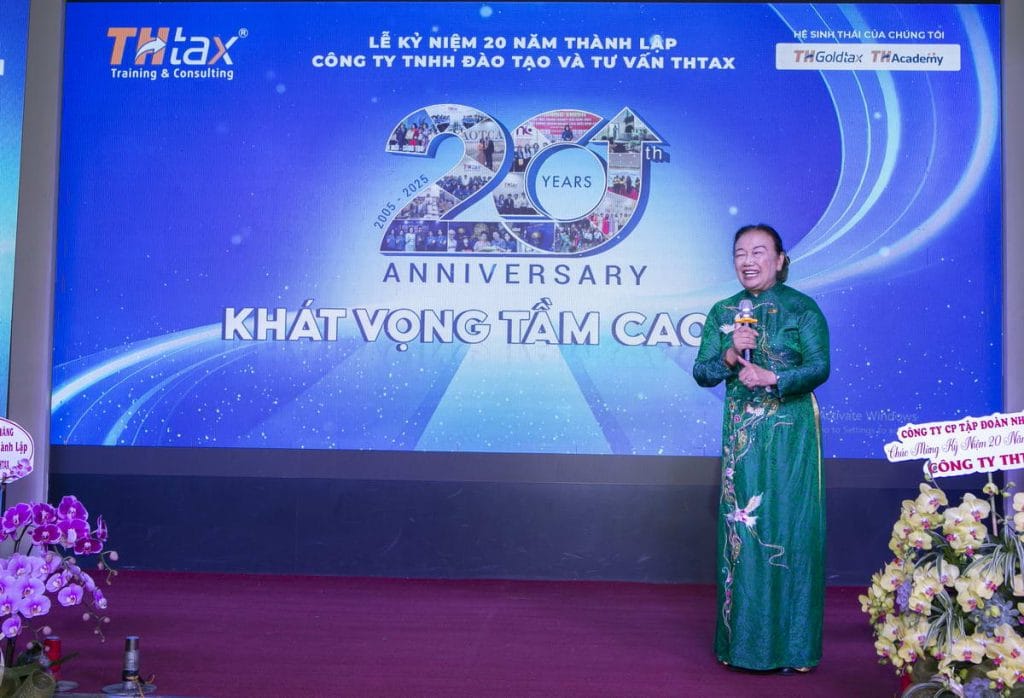 Đó là phát biểu khai mạc của bà Ngô Thanh Hạnh – Tổng Giám đốc Công ty TNHH Đào tạo và Tư vấn THTAX tại Lễ kỷ niệm 20 năm thành lập, diễn ra ngày 6/9/2025, tại TP.HCM.